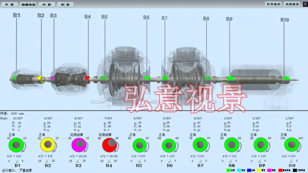 2)可將外部結構透明,看內部軸及軸瓦、葉片運轉情況;