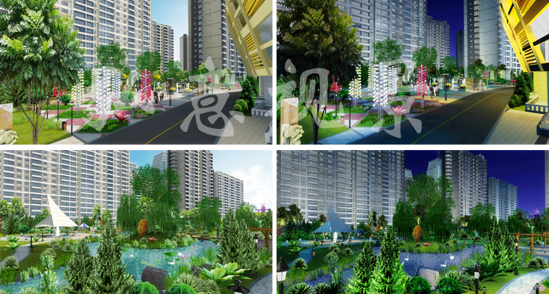 穿過窗子從室內樣板間 飛出 室外燈光廣場