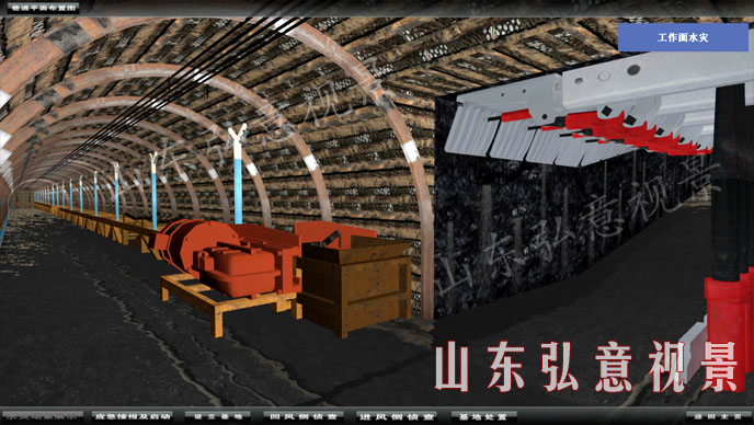 | 一、一)煤礦環(huán)境:煤礦井下巷道,內(nèi)含進風側(cè)、回風側(cè)、工作面支架、避難硐室、風門、風機、主通風機房、電纜、水管、掘進機、皮帶運輸機。 |