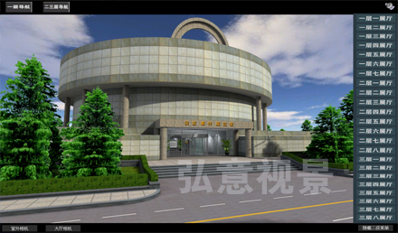 (2)用戶登錄成功后,進入3D場景的頁面,在該頁面上部添加鏈接欄區(qū)域,鏈接項目文字為“查詢統(tǒng)計”和“退出”。用戶點擊“退出”按鈕關(guān)閉場